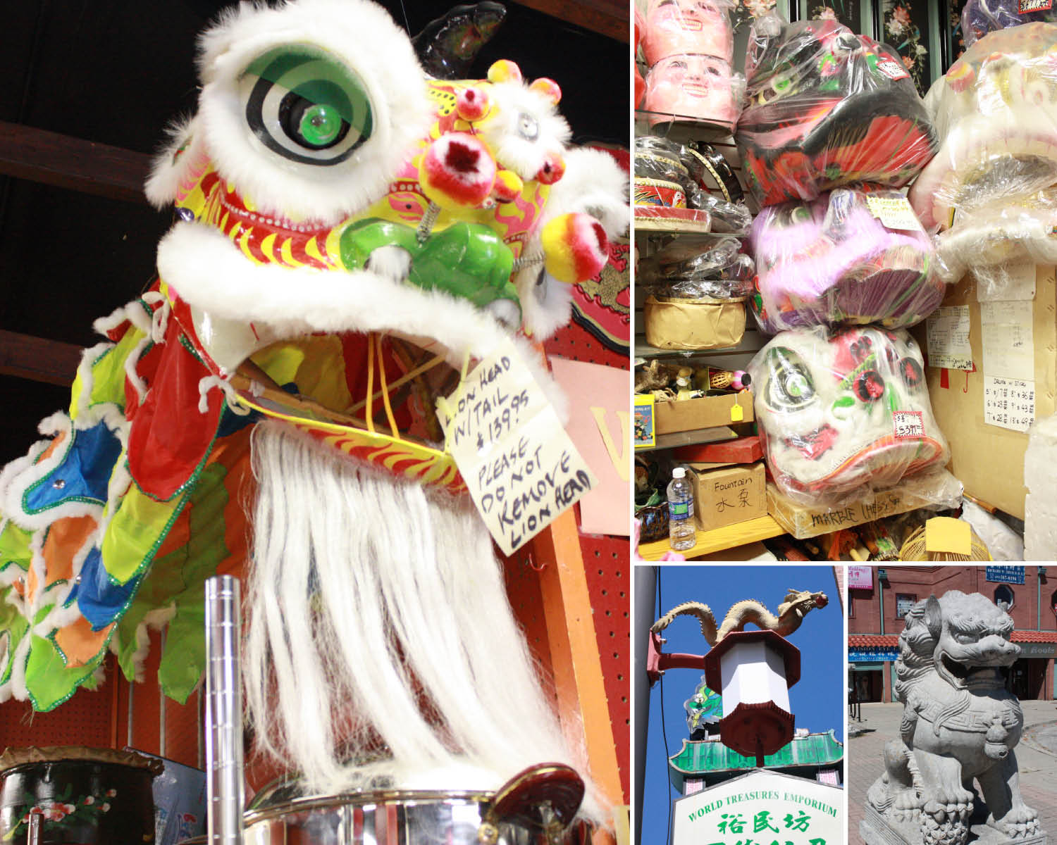 Chinese folks are crazy about dragons. I read somewhere that dragons are considered the “Governors of Rain” or something but I’m pretty sure it’s more than just that. Dragons are everywhere in Chinatown, even on top of all the light posts. This one shop sold the giant dragons they use in new years parades. You know, where 10 people line up under the body and dance in big swirling patterns. So cool! That one up on the left, which is actually a lion, was priced at $139. Pretty incredible when you consider the time it took to create it! If I had a grand staircase or 2 story ceilings, I would love to hang one of those dragons mid air. Wouldn’t that be awesome? It would scare the crap out of Lola, but dang, it sure would be cool!