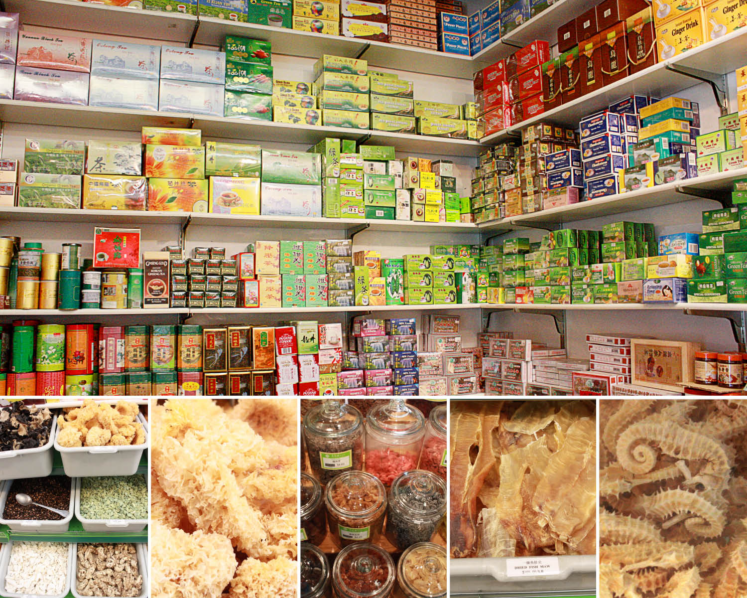 And then there is the exotic grocery store that sells flaked eel and dried sea horses (above photo, lower right). That top photo is just the green tea section!