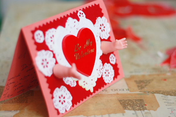 Oh my, those chubby little arms crack me up, how adorable… What a great idea, I’m in! I love your wax doily hearts too, they look so lacy and delicate.