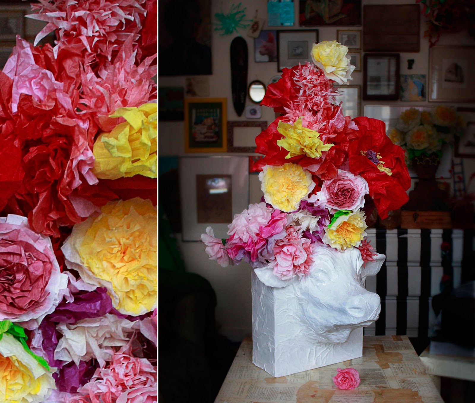 Sylvia just informed me that she is busy preparing coffee filter flowers, as Almatrieb (aka the Cow Parade) is going down in her village in Switzerland this weekend. How exciting! If anyone else out there attends the festivities and spots some paper flowers in the crowd, pleaseohpleaseohpleaseohPLEASE SEND ME A PICTURE!