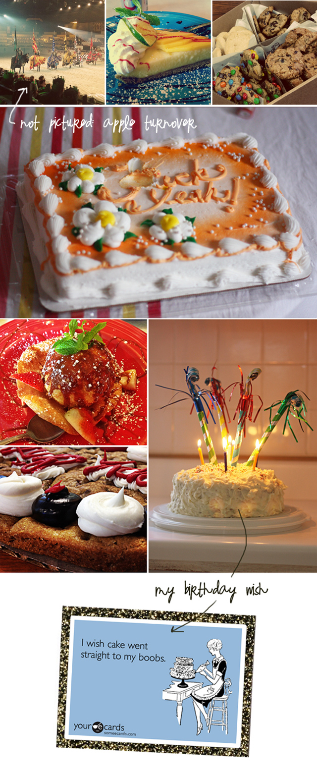 I may or may not have spent my birthday dinner at a Medieval Times (“Dinner and Tournament!”) eating chicken legs with my fingers and wearing a paper crown that barely squeezed over my head. It was amazing. There were long-haired horses and sequined wizards and pina coladas served in glow-in-the-dark challices.