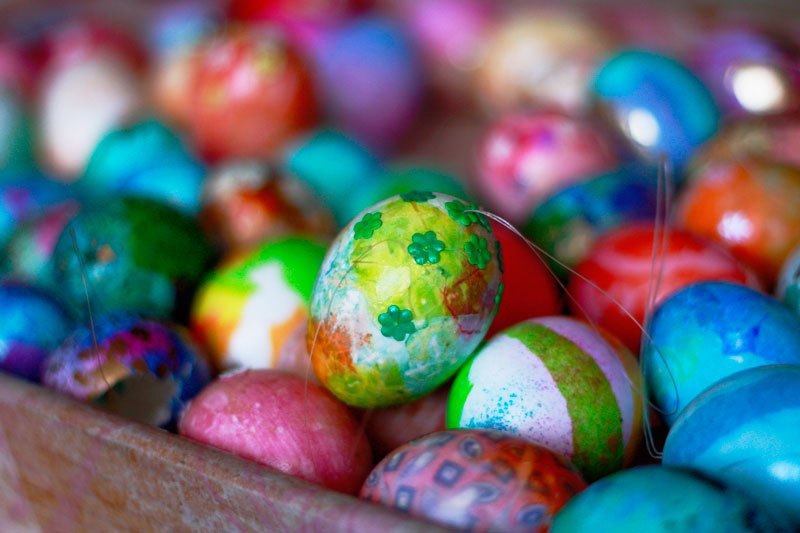 These eggs are lovely though, aren’t they? I remember making them in the kitchen of my old apartment with my Aunt Nancy. She brought over a giant batch of parsley, onions and panty hose,  and I just about cried my eyes out trying to remove the onion skins to extract the dye (click here for directions). Beautiful as they are, this is one Easter project I will not be duplicating any time soon. I wear way too much mascara to let myself cry that ugly.