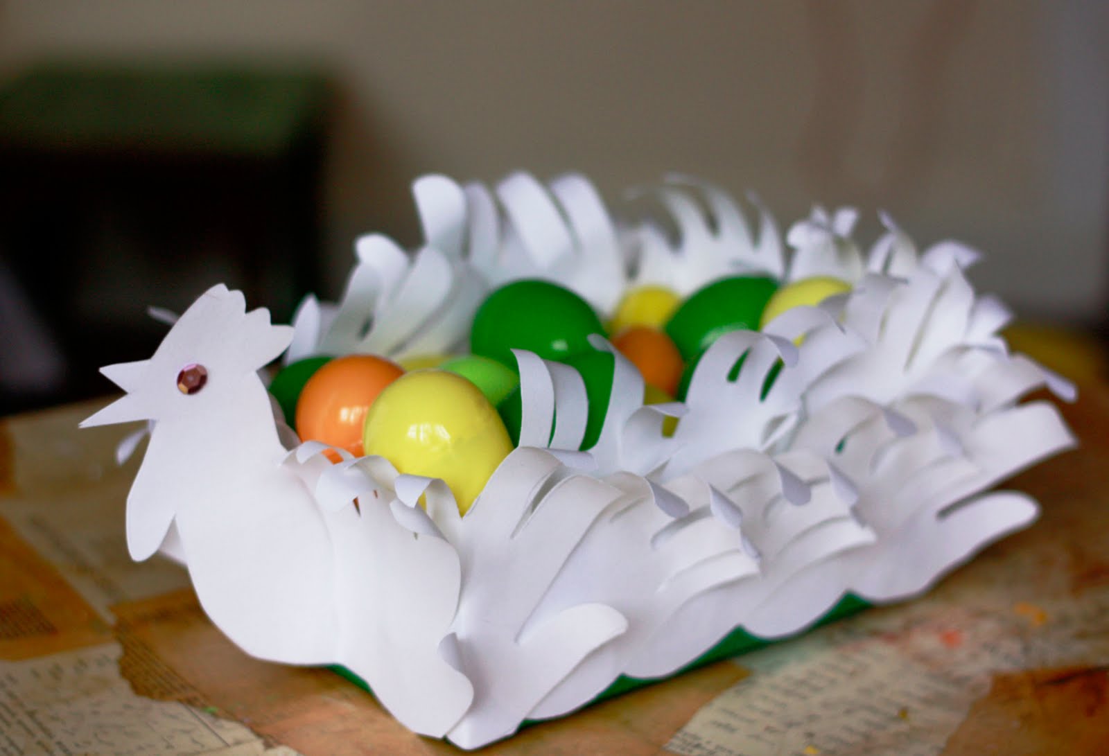 Remove one side of the box and cut out the chicken’s head (dang that sounds gross)…(freehand it yourself or download the template here). Attach the head to the box using a glue stick or double-stick tape.