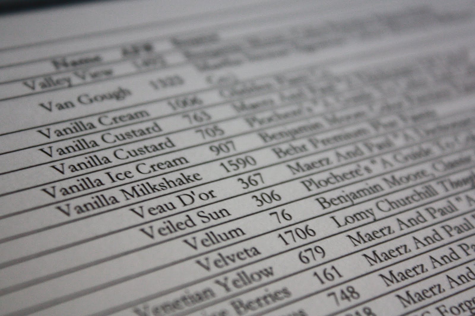 And while I scoff at the idea of it now, it seemed a pretty good idea back then. Half the swatches came from typical sources like paint manufacturers, apparel catalogs, botanical guides, cosmetic companies, etc. The other half came from myself and a group of friends who made our own color identities (“ooo! this yellow is the color of my friend Karen’s Labrador, let’s name it after him” and suddenly Duncan 878 was born)….they were all recorded and referenced in a 42 page catalog no one will ever find interesting but me. But that’s Ok. I’m cool with that. I know the ‘real art’ is the catalog and not the thing on the wall. I like my catfish sandwich, no matter what you call it.