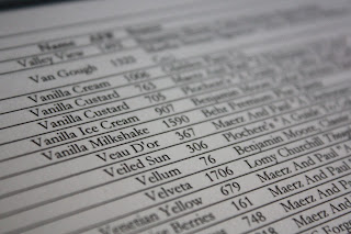 | I love the center swatch on the bottom right image, named “The Thin Squealing Noises of Children on a Play Ground Making Fun of Life” courtesy of Iona O. |