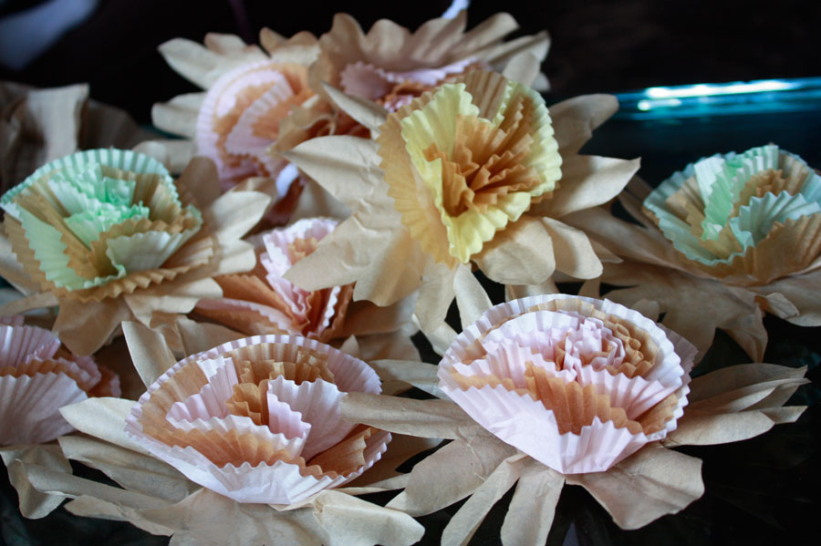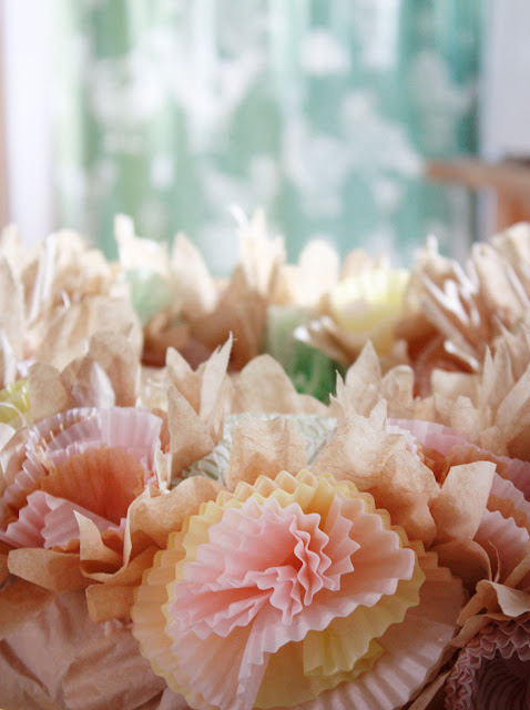 Now that you have the rose all rolled up, twist off the ends to keep it in shape so you can make a bunch more roses. For a 15″ wreath base, I used 35 roses. I could have gotten by with ten less, but it would have looked even cooler with ten more. It’s a matter of preference.